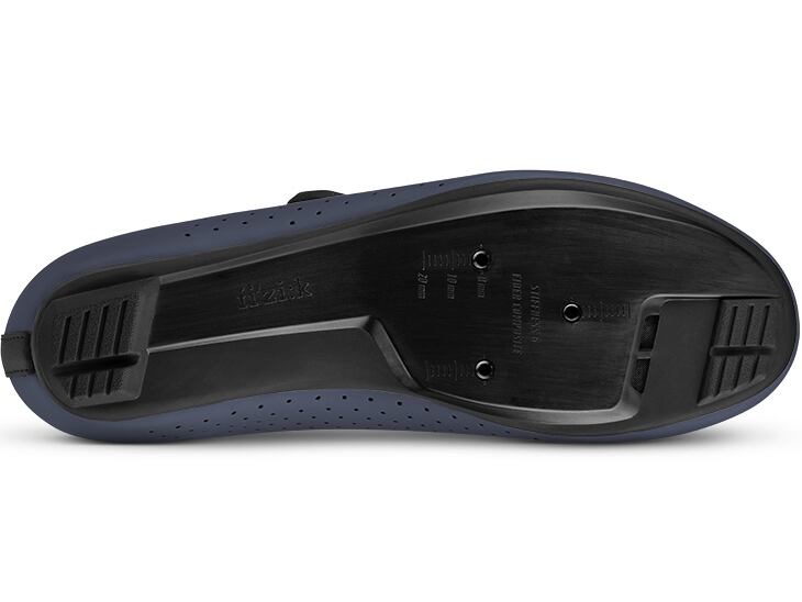 新たに設計されたR5ナイロンアウトソールは、快適性と適度な剛性を持ち、効率的なペダリングを実現します。さらに、クリート位置は従来のソールよりもやや後方に設定され、ペダリング効率の最適化と膝の圧迫軽減に役立ちます。広いベントインレットから風を取り込み、シューズ内の蒸れを防ぎます。