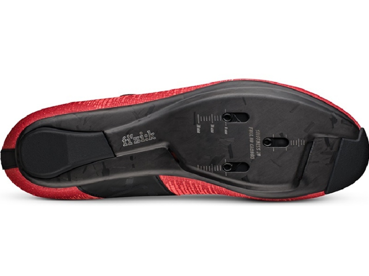 R2 CARBON OUTSOLE:最新のインフィニートは、軽量化と剛性の向上を実現するフルカーボン製の新しいアウトソールを採用。剛性指数は10で、フィジークシューズシリーズの中で最も剛性が高いものとなっています。大開口のベンチレーションで快適なエアフローを提供し、温度調節をサポートします。クリートの位置は従来よりもやや後ろに設定されており、ペダリング効率を最適化し、膝の圧迫感を軽減します。