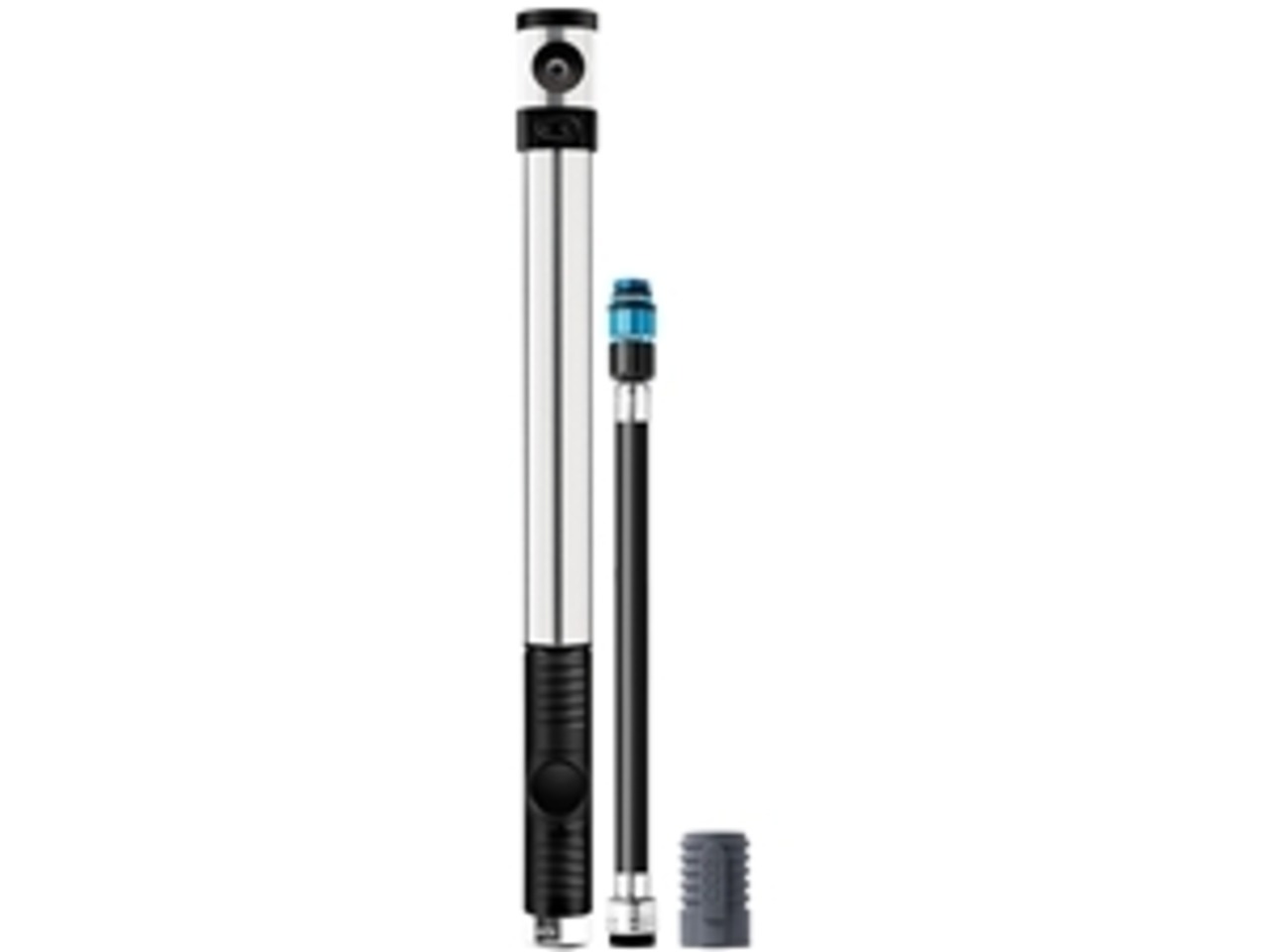 エルゴノミックなハンドルと、マグネットでカチッとくっ付く、本体に収納式のホースを備えるミニポンプ。