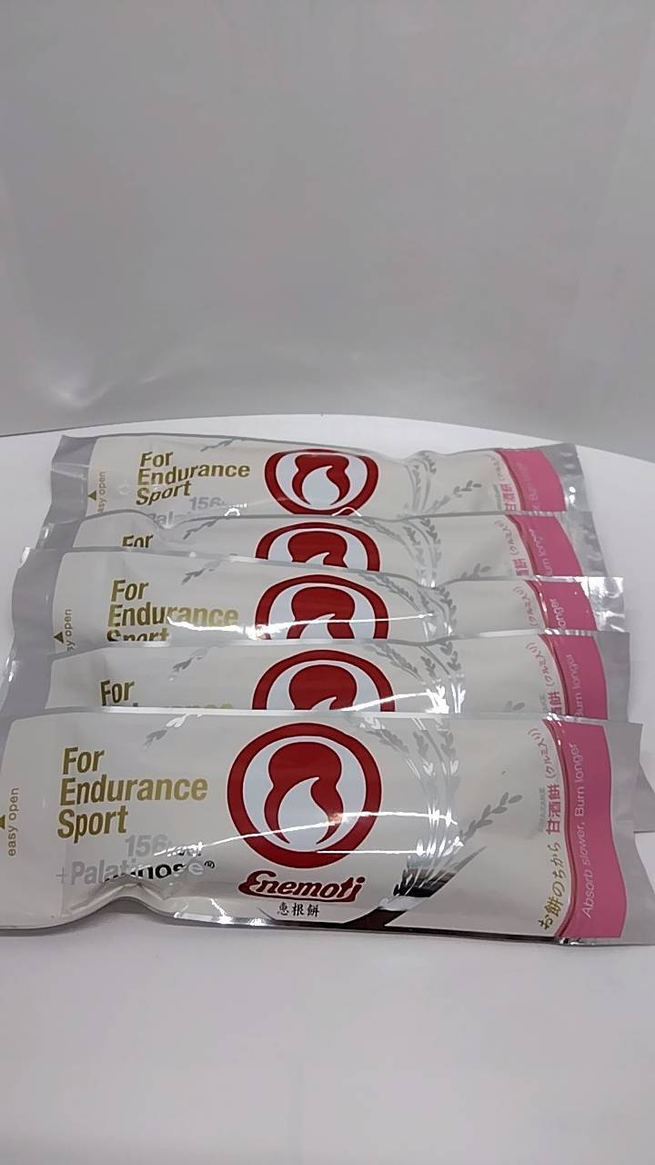 お米の自然な甘みに糖質のエネルギーをゆっくり長く使える「パラチノース」を配合した「エネもち」。長時間に及ぶエンデュランススポーツの運動中はもちろん、レース当日の朝食としても代用できるエネもちに酒粕が香る「甘酒味」が登場。疲労の原因となる体内で多量に発生した活性酸素の酸化ストレスを抑える「抗酸化物質」を多く含む酒粕や甘酒は、昨今ではスポーツシーンでも注目されています。一般的な糖質と比較して、体内にゆっくりと吸収され長く使える天然の糖質「パラチノース」とともにパフォーマンスをサポートする機能性を併せ持ちます。ケミカルな素材を使用せずカラダにやさしく、ほどよい甘みやクルミの食感、咀嚼することでえられる満腹感、お餅特有の腹持ちの良さ、長時間に及ぶ競技や運動のなかでもEnemotiによって食事の時間が楽しめます。一本持っておくことでトライアスロンやサイクル、トレイルランにウルトラマラソン、登山と持久力が必要とされるさまざまな競技・シーンで活躍します。
