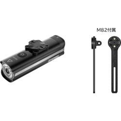 スマートフロントライト、ライト本体サイズ:108(長さ)*31(幅)*29(厚み)mm、ライト本体重量:160g、バッテリー容量:5000mAh、光源:LED、アンチグレアレンズ採用、本体材質:アルミニウム合金、防水機能:IPX6、落下耐久:1.2m、無線通信:BLE、最大照射距離:150m、横方向視認角度:220°、光束:最大1200lm、点灯モード:5つのモード、カスタム可、点灯時間目安:高輝度点灯モード 最大1時間45分/中輝度点灯 最大4時間/高輝度点滅 最大30時間/低輝度点滅 最大70時間、自動スリープ・起動、環境光センサー、iGPSPORTサイクルコンピュータおよびアプリケーションとの接続・設定、充電インターフェイス:USBタイプC、充電時間:約2.5時間、充電温度範囲:0~45℃、電源供給機能(逆充電用ケーブルを別途必要)、使用温度範囲:-10~50℃、取り付け方法:付属バイクマウントと専用アダプターで固定、パッケージ内容:ライト本体*1・USBタイプC充電ケーブル*1・M82バイクマウント*1・M82ライト取り付け用アダプター、ユーザーマニュアル
